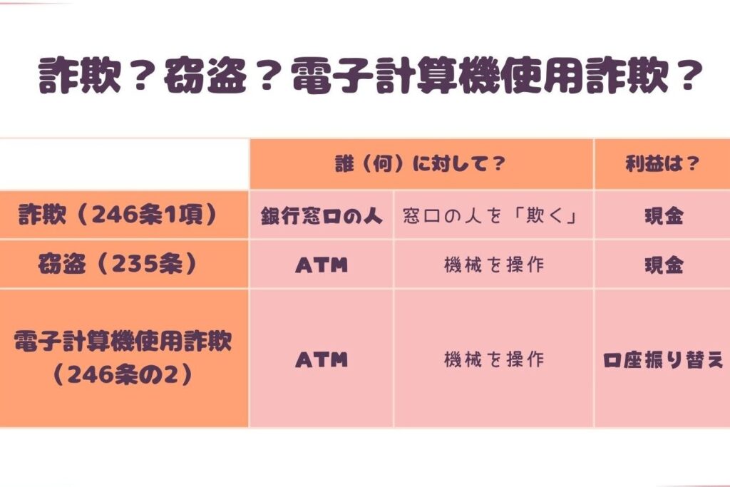 - 詐欺: 不正な手段でお金を騙し取る行為。