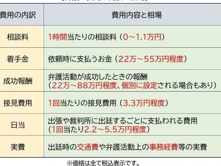 - 相談料: 初回相談時に発生する費用。一般的には5,000円から10,000円程度が相場です。