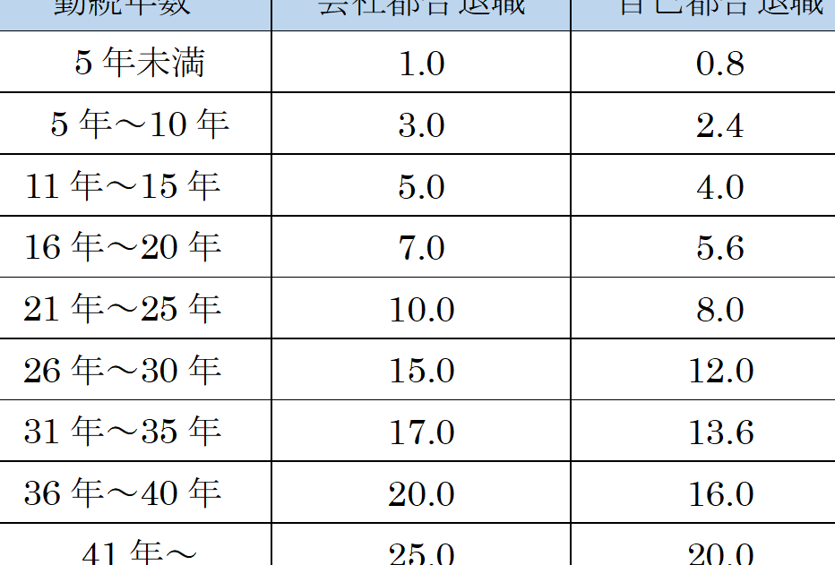 - 勤続年数に応じて、基本給の6ヶ月分以上