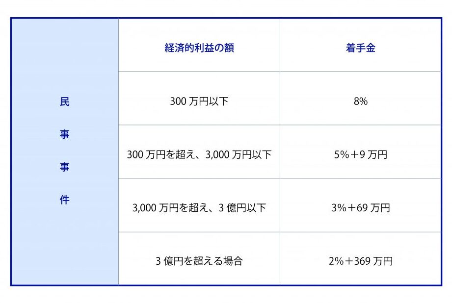 - 民事事件: 着手金は通常、数十万円から始まることが多い。例えば、慰謝料請求の事件では、50万円から100万円程度。