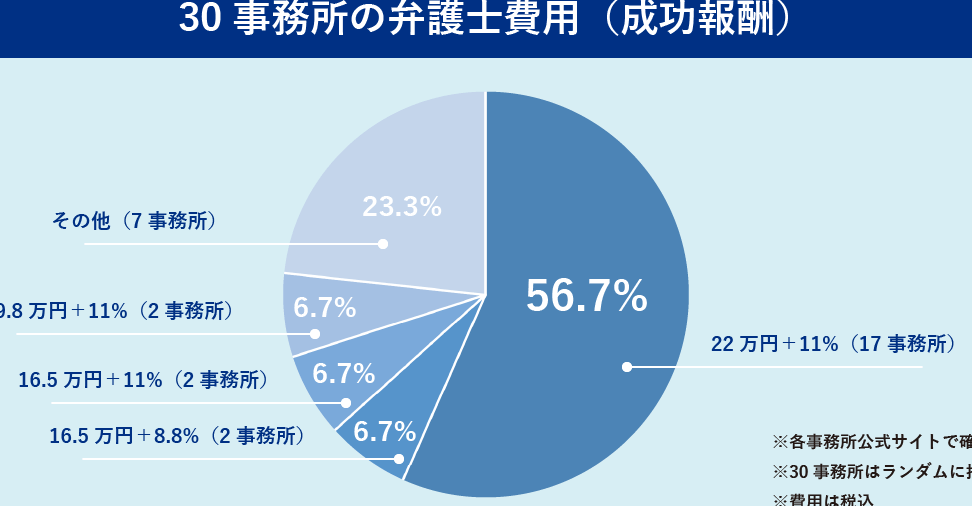 - 残業代請求: 成功報酬の形で、得られた金額の5%から25%が設定されることが多い。