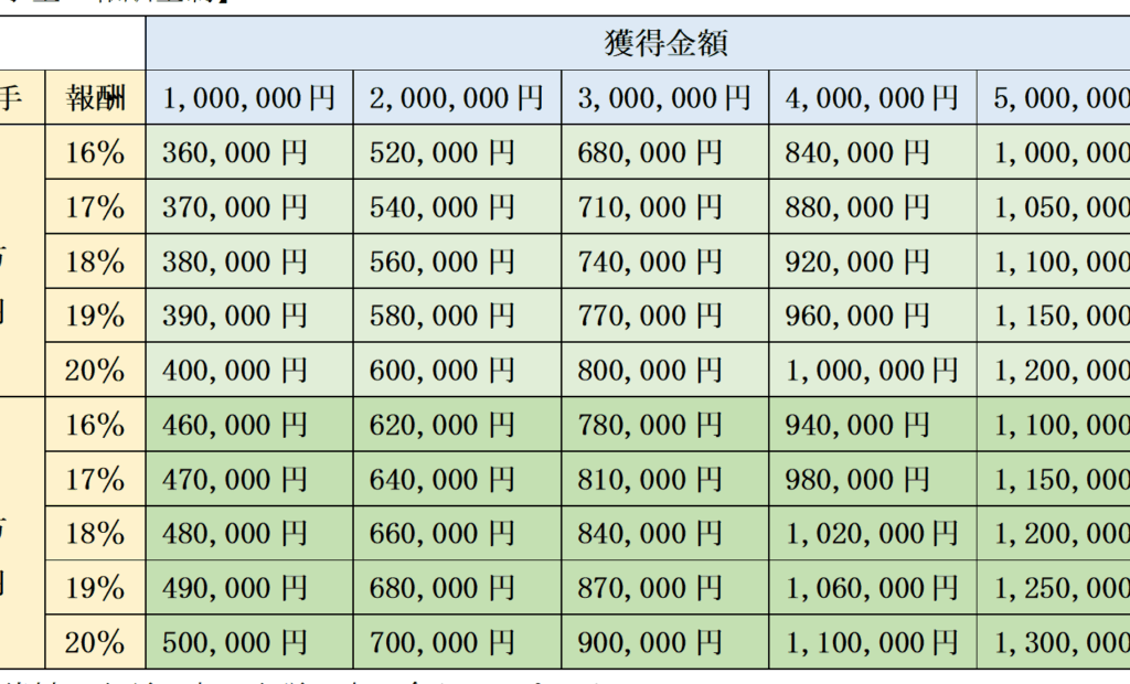 - 成功報酬: 成功した場合に支払う報酬。多くの場合、獲得額の10%から30%。