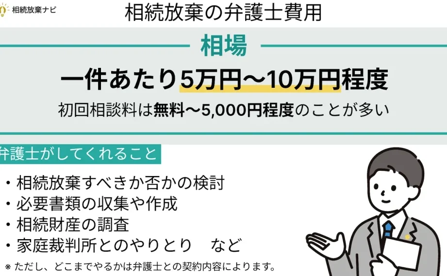 弁護士費用は、依頼内容によって異なる。以下に、相続放棄に関連する主な費用を説明する。
